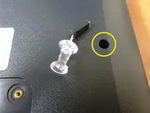Винт справа скрыт под резиновой заглушкой. Снимите заглушку острой вещью, такой как швейная булавка, затем выкрутите винт.