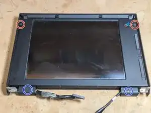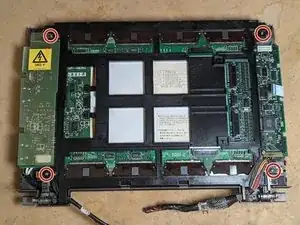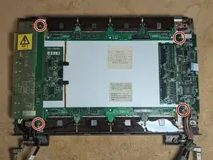 Удалите четыре винта 3 мм на задней поверхности ноутбука, фиксирующие петлю ЖК-дисплея.