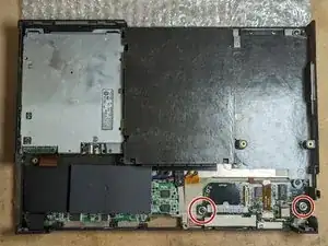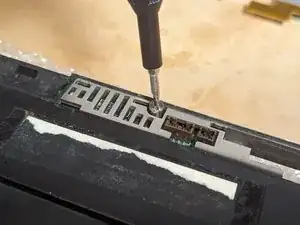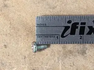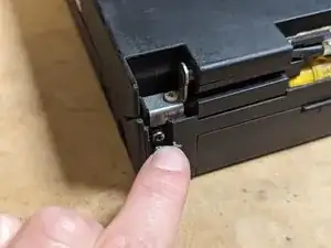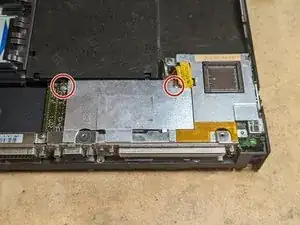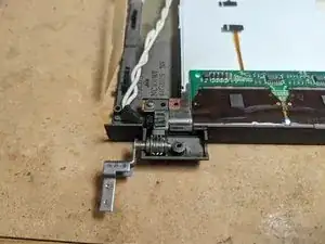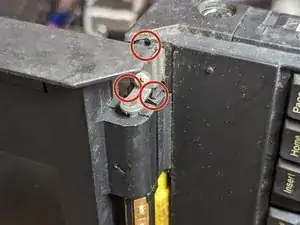 Удалите два серебристых винта 5 мм, удерживающие верхнюю часть петли к основанию ноутбука.