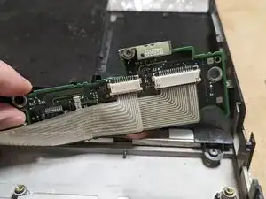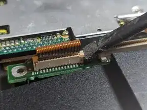 Отсоедините гибкий разъём, поддев медиатором или ногтем, затем аккуратно выведите гибкий кабель.