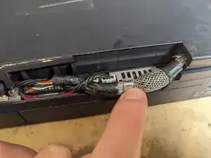 Снимайте планар медленно, чтобы увидеть расположение динамика ПК под ним. Только планар удерживает его на месте против платы клавиатурного драйвера. Смотрите эталонное изображение для ориентации кабеля и положения резинового крепления динамика.