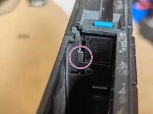 Поддерживая нажатие, сдвиньте пластиковую часть вверх, чтобы освободить пластиковые защёлки. Деталь должна отойти.