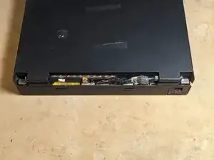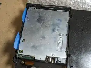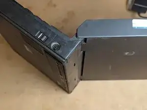 Вытяните дисковод по диагонали, чтобы освободить правую сторону от жёсткой рамной планки.
