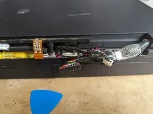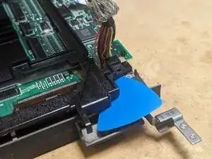 Отстегните гибкий кабель дисковода с помощью лопатки.