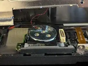 Удалите батарейку типа «таблетка», воспользовавшись лопаткой для поддевания её разъёма.