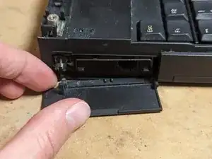 Нажмите на пластиковую деталь на внешней стороне корпуса рядом с PS/2-разъёмом мыши.