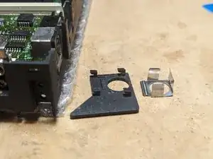При повторной установке дисковода возможно потребуется вставить лопатку наполовину между двумя медиаторами, чтобы листовой металлический кронштейн дисковода очистил защёлку на боковой стенке пластикового корпуса.