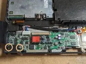 Перебросьте плату питания подсветки влево, обнажив высоковольтные провода CCFL.