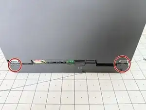 Удалите два (2) винта 8 мм (BH) с нижнего левого кронштейна дисплея с помощью бита Torx T6.