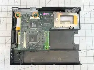 Во время следующего шага поддерживайте модем при снятии основной платы. Он соединён, и отсутствие поддержки может повредить разъём.