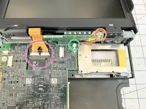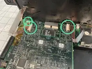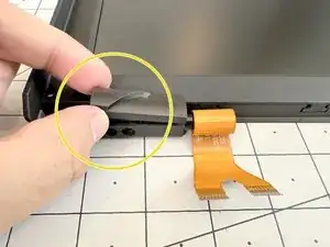 Отсоедините ленточные кабели дисплея от дочерней платы с помощью пластиковой лопаточки.