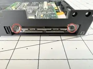 Удалите два (2) плоских винта 6 мм (BL) рядом с разъёмом с помощью битки T6 Torx.
