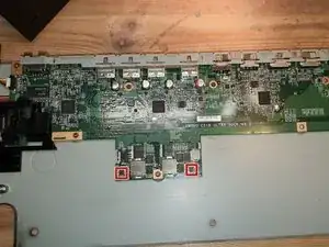 Снимите 8 нижних винтов, обведённых красным.