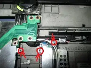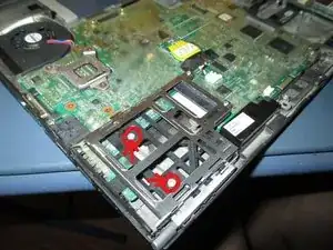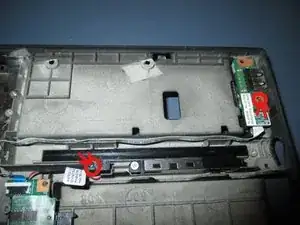 На изображении выше показаны два винта, крепящиеся к материнской плате — открутите их. Если установлен модуль Bluetooth, сейчас хорошее время, чтобы его снять. У меня модуль Bluetooth не установлен, поэтому этот шаг я пропускаю.