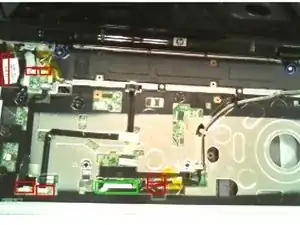 Отключите плоские кабели от 7 позиций (красные квадраты), показанных на изображении: