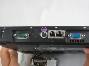 Выверните винт длиной 5,6 мм, который крепит ЖК-дисплей к верхней крышке.