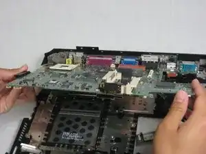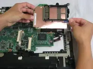 Вытяните белый язычок, соединяющий ЖК-дисплей с материнской платой.