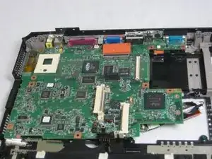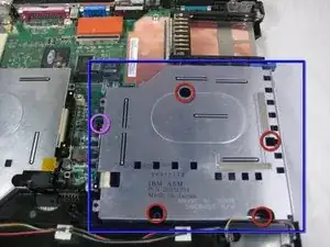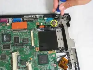 Удалите винт 5,6 мм, расположенный в верхнем правом углу материнской платы.