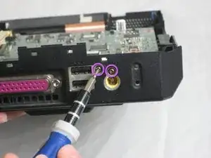 Выверните винт длиной 5,6 мм, расположенный с левой стороны трёхконтактного разъёма.