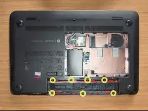 Во время этой операции защёлки могут сломаться. После снятия нижней крышки проверьте внутри ноутбука на наличие осколков защёлок. Если найдете, немедленно удалите их: они могут спрятаться и позже вызвать повреждения.