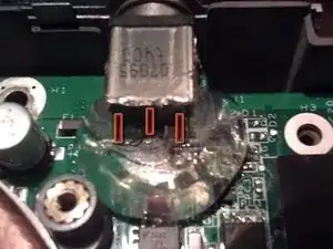Пришлось использовать немного флюса, но мне удалось заново залудить все три контактные точки на материнской плате, а также выводы разъёма