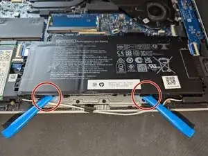 Аккуратно подденьте аккумулятор пластиковыми лопатками снизу, чтобы поднять его из посадочного места, что также отключит аккумулятор от системы.