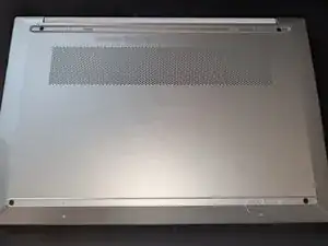 Начните с удаления длинных резиновых накладок, расположенных под ноутбуком, чтобы открыть доступ к винтам корпуса, находящимся под ними.