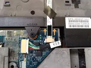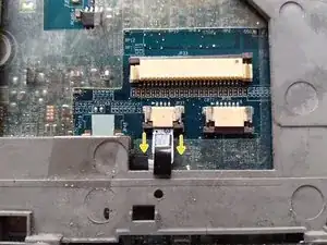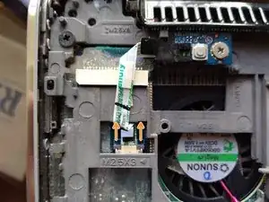 Отсоедините лентовый кабель, подключённый к тачпаду.