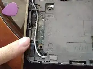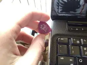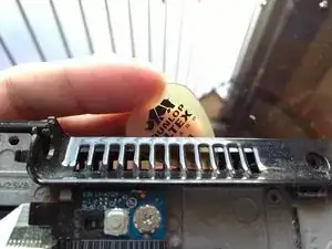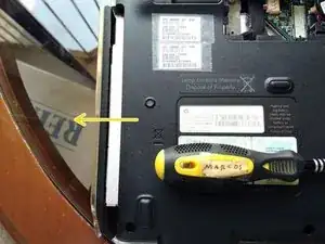 Используйте пластиковую меди, чтобы снять пластик, обрамляющий боковую часть ноутбука.