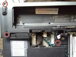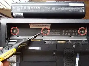 Удалите 3 винта Phillips #00, расположенные под аккумулятором.