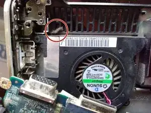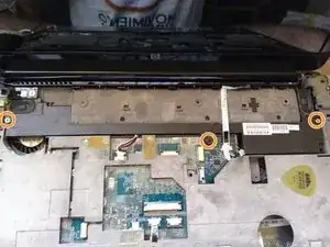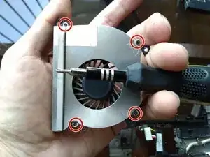 Удалите 2 винта, крепящие вентилятор к шасси ноутбука.