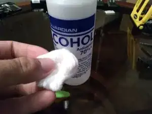 Используйте изопропиловый спирт 70% или выше и вату или впитывающую бумагу, чтобы смочить их.