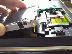 Снимите динамики и 2 винта, удерживающие правую сторону экрана.