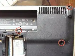 Удалите 2 винта, которые были скрыты приводом DVD.