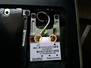 Удалите 2 винта и извлеките карту Wi‑Fi.