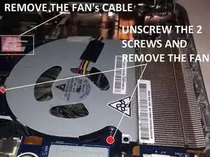 Если вы хотите заменить кулер процессора, нужно открутить 2 винта (см. фото)