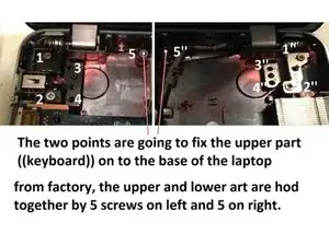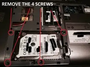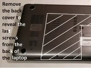 Чтобы открыть ноутбук, сначала необходимо открутить винты на задней крышке.