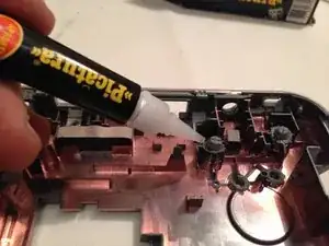 Нанесите клей внутри пластикового штифта