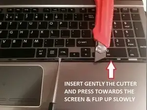 1. Аккуратно вставьте нож (или другой острый инструмент) и нажмите в сторону экрана, затем медленно отогните вверх.