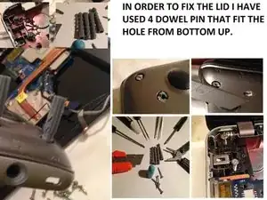 вставьте пластиковый штифт снизу вверх и выровняйте его по той же высоте, что и остальные отверстия под винты