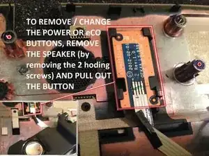 Чтобы заменить кнопку Eco/3D или кнопку питания, сначала снимите динамики.