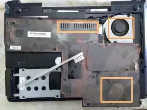 Снимите панель и очистите ее щеткой. Особое внимание уделите щелям и области вентилятора.