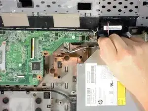 Слишком быстрое или резкое поднятие верхней панели может повредить кабель динамика, который все еще прикреплен снизу.