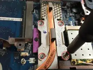 Рядом с местом установки Wi‑Fi карты находится винт, который нужно открутить, а затем сдвинуть привод вниз и вытащить.
