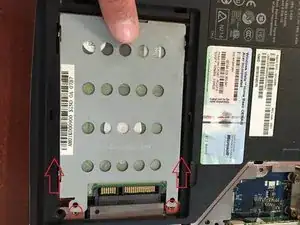 Вставьте жёсткий диск на место и сдвиньте его вправо, чтобы он правильно встал. Затем закрутите два винта справа.