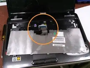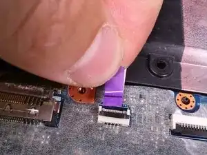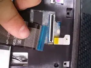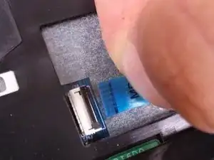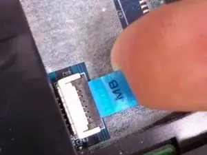 Проследите ленточный кабель до синего разъёма на ноутбуке.