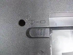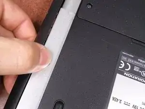 С ноутбуком всё ещё перевёрнутым, найдите панель в форме буквы "L".