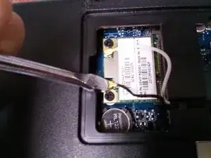 ПРИМЕЧАНИЕ: Это гораздо проще сделать после удаления беспроводной карты. Пространства для работы будет значительно больше.