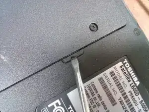 Подденьте панель плоской отверткой или ногтем у выемки, обнажив жёсткий диск.