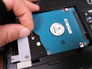 На конце жёсткого диска есть серебристая планка с одним винтом, удерживающим её на месте.